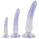 3-piece set 1x, butt plug and 2 x anal dildos Different sizes and textures Each with a strong suction cup All flexible and bendable Toy trio for anal pleasure and amp training! 3-piece anal training set from Crystal Clear 1 x smooth, tapered butt plug and 2 textured anal dildos with pronounced glans. Different sizes Plug Total length 10.8 cm, insertion length 9.3 cm, diameter max. 4 cm, weight 99 g. Dildo small Total length 11.4 cm, insertion length 9.9 cm, diameter max. 3.4 cm, weight 92 g. Dildo large Total length 19.1 cm, insertion length 18 cm, diameter max. 4.4 cm, weight 219 g. Each transparent plugdildo has a distinctive penis look with sensitive glans. They are also flexible and bendable for easy insertion and optimal adaptation to the body and movements. All with a wide suction cup base that ensures safe anal handling without slipping in. The suction cup base also sticks firmly to all smooth surfaces and allows for hands-free use.